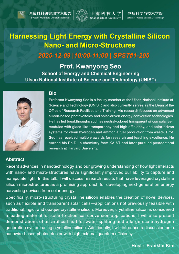 [SPST Seminar] Harnessing Light Energy with Crystalline Silicon Nano- and Micro-Structures