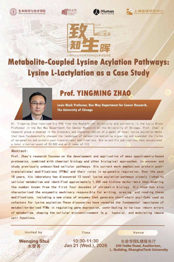 [SLST Seminar] Metabolite-Coupled Lysine Acylation Pathways: Lysine L-Lactylation as a Case Study