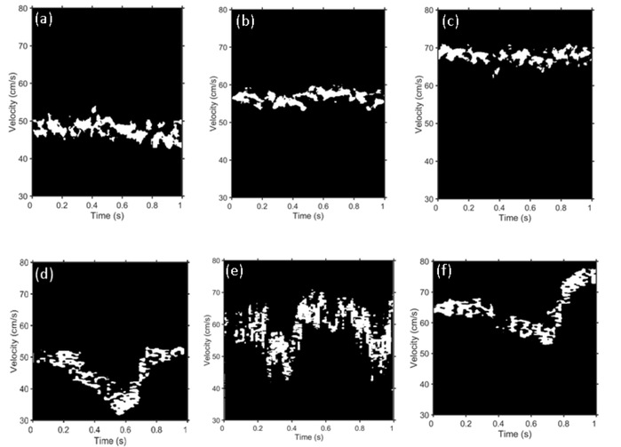 Measurement results of blood flow velocity using the stretchable Doppler ultrasound patch.