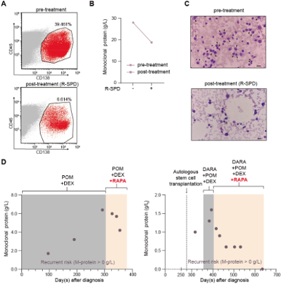 To evaluate the clinical translational potential of this strategy, the team conducted studies in multiple myeloma (MM) models. MM is a hematologic malignancy characterized by the proliferation of abnormal plasma cells.Immunomodulatory drugs IMiDs, a class of MGDs, form the therapeutic backbone of treatment. The study revealed that mTOR inhibitors restored the sensitivity to pomalidomide in pomalidomide-resistant myeloma cell lines. Importantly, in the clinical trial of mTOR inhibitor combined with pomalidomide treatment in patients with relapsed/refractory multiple myeloma, the combination therapy effectively reduced the number of malignant plasma cells in patients and significantly improved multiple clinical parameters. Furthermore, the clinical trial was the first to demonstrate that the combination treatment delayed the emergence of drug resistance and suppressed disease relapse in multiple myeloma (Figure 2).