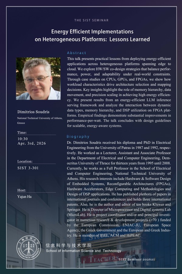 [SIST Seminar] Energy Efficient Implementations on Heterogeneous Platforms: Lessons Learned